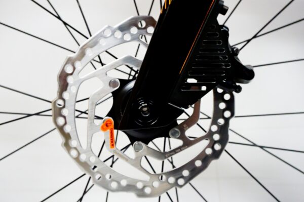 油圧ディスクブレーキは天候や路面状況に左右されず、安心の制動力を発揮します。