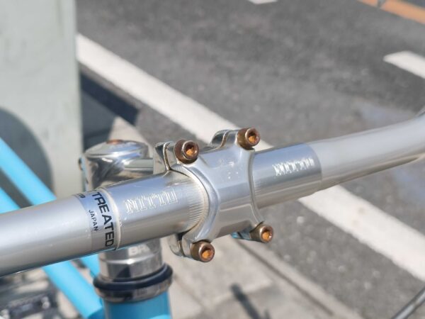 ハンドルはNITTOのプロムナードハンドルになっていて街乗りでも楽な姿勢で乗る事が出来ます。