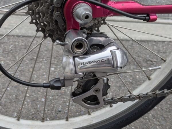 こちらの自転車はかなりカスタムされていて、SHIMANO DURA-ACE 7800系が取り付けられております。