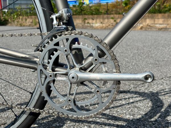 クランクは SR SAKAE がインストールされており、細身のクランクアームがフレームと良いマッチングになっています!